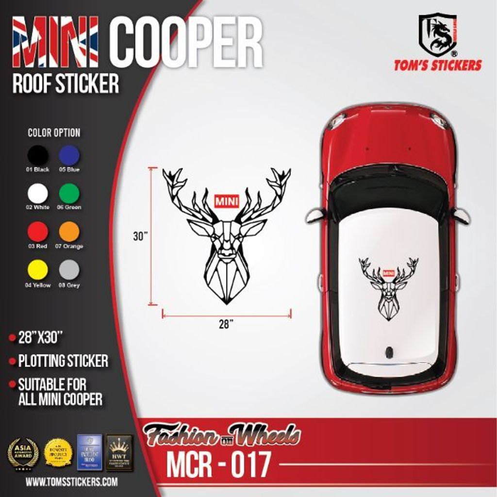 💥💥Car Sticker-MINI COOPER ROOF TOP STICKERS 💥💥